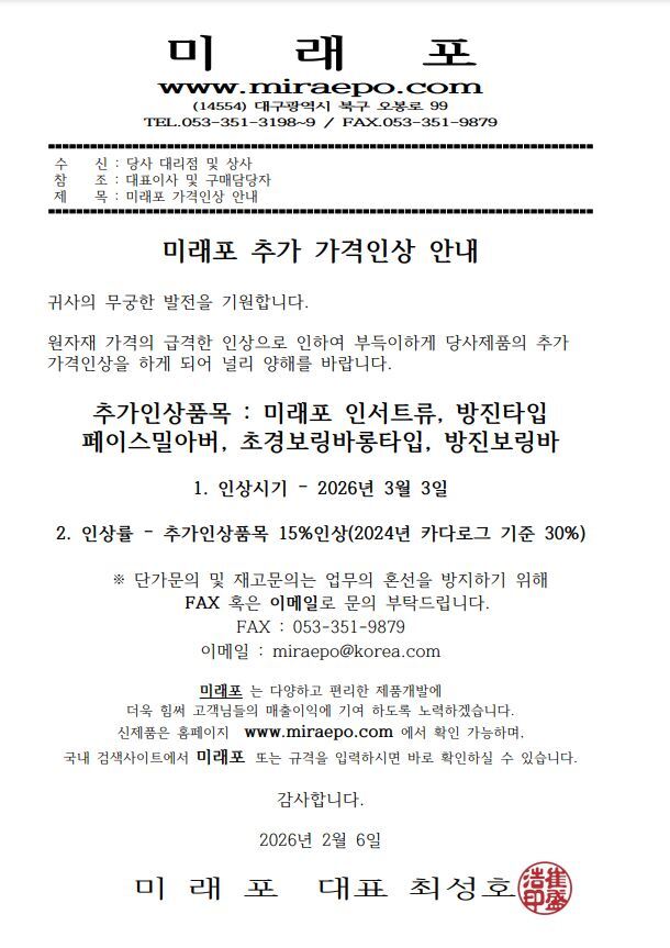 2026³â ¹Ì·¡Æ÷ Ãß°¡°¡°Ý Àλó¾È³»(ÀμƮ·ù,ÃÊ°æ¾Æ¹Ù·ù)