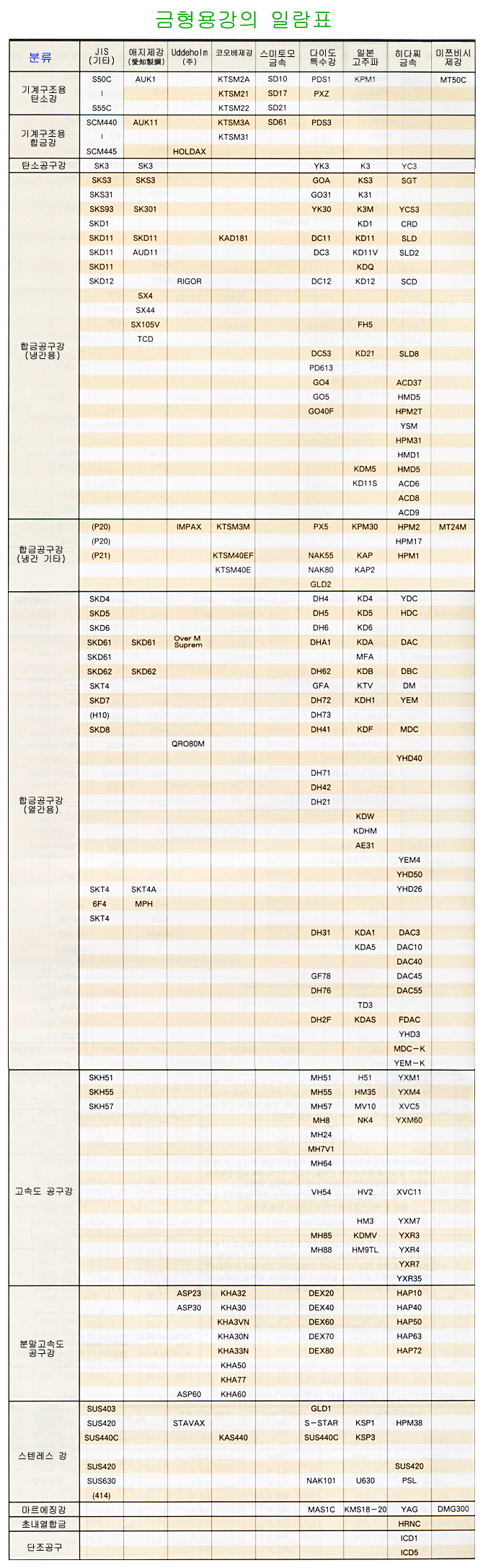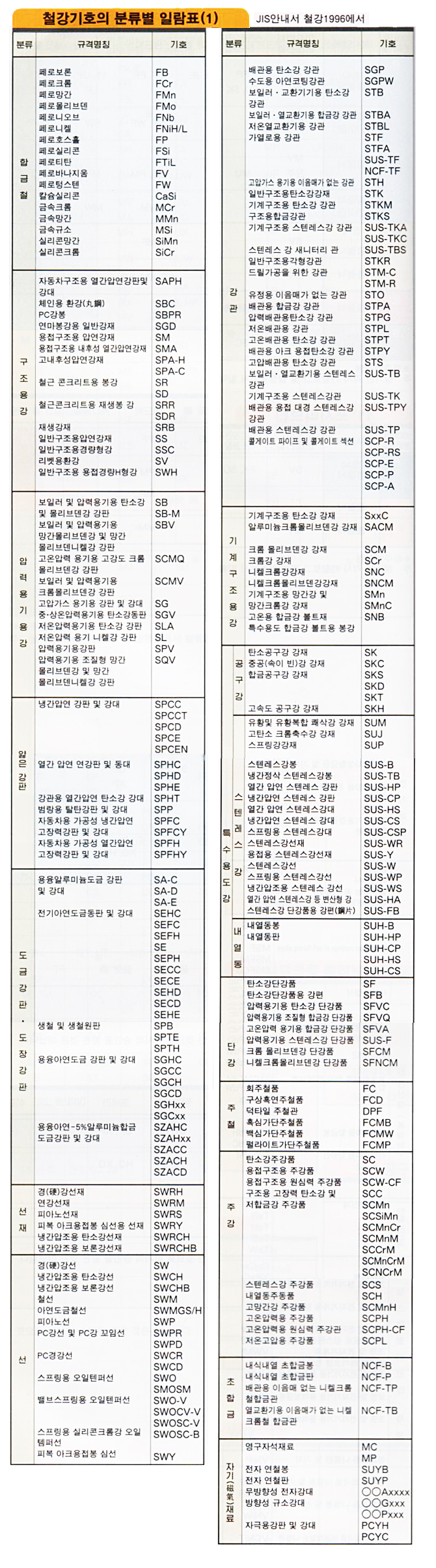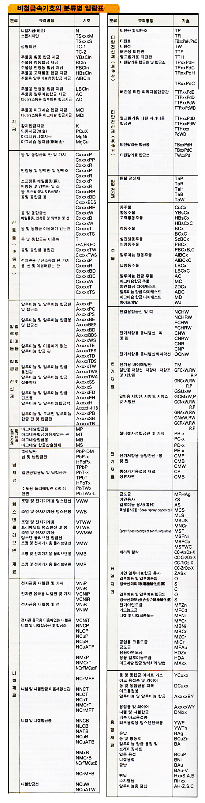 ±Ý¼ÓÀç·á±âÈ£ ´ëÁ¶Ç¥