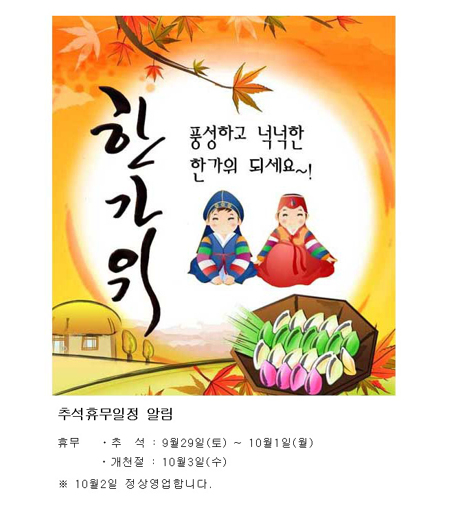 Áñ°Ì°í °Ç°ÇÑ Ãß¼®¿¬ÈÞ µÇ¼¼¿ä(Ãß¼®ÈÞ¹«ÀÏÁ¤¾Ë¸²)