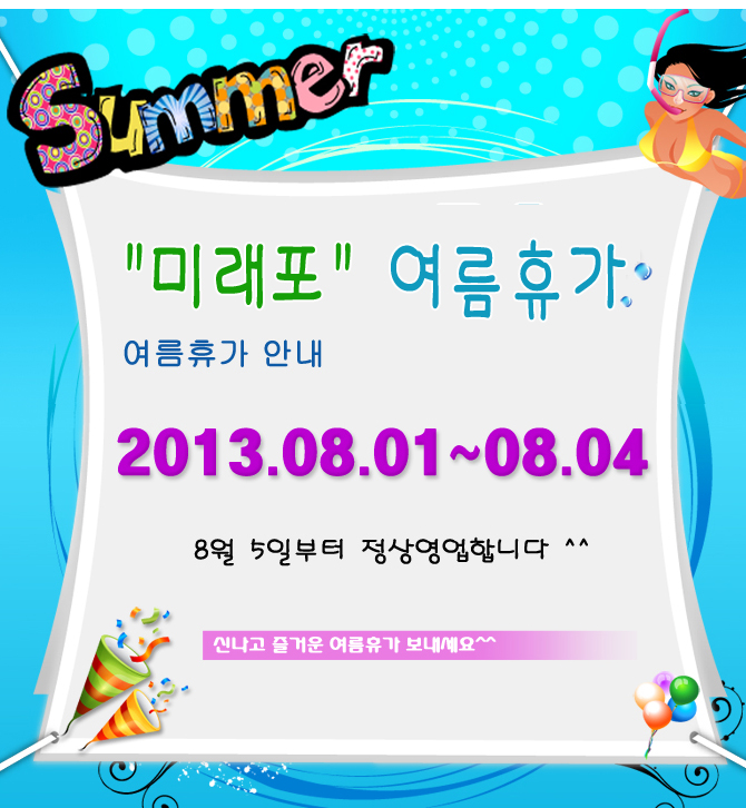 ¹Ì·¡Æ÷ ¿©¸§ÈÞ°¡ÀÏÁ¤ ¾Ë¸³´Ï´Ù.