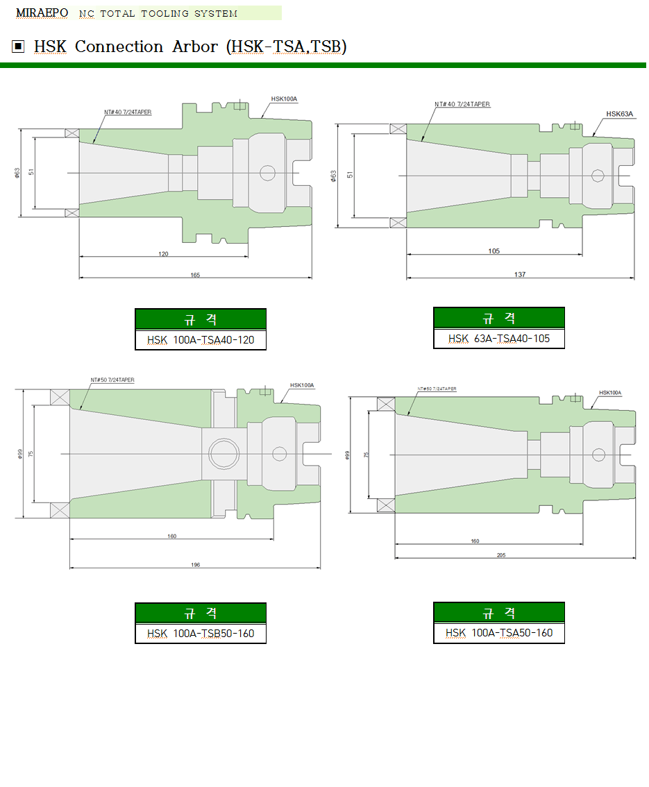 HSK Connection Arbor (HSK-TSA,TSB) Á¦Ç° Ãß°¡