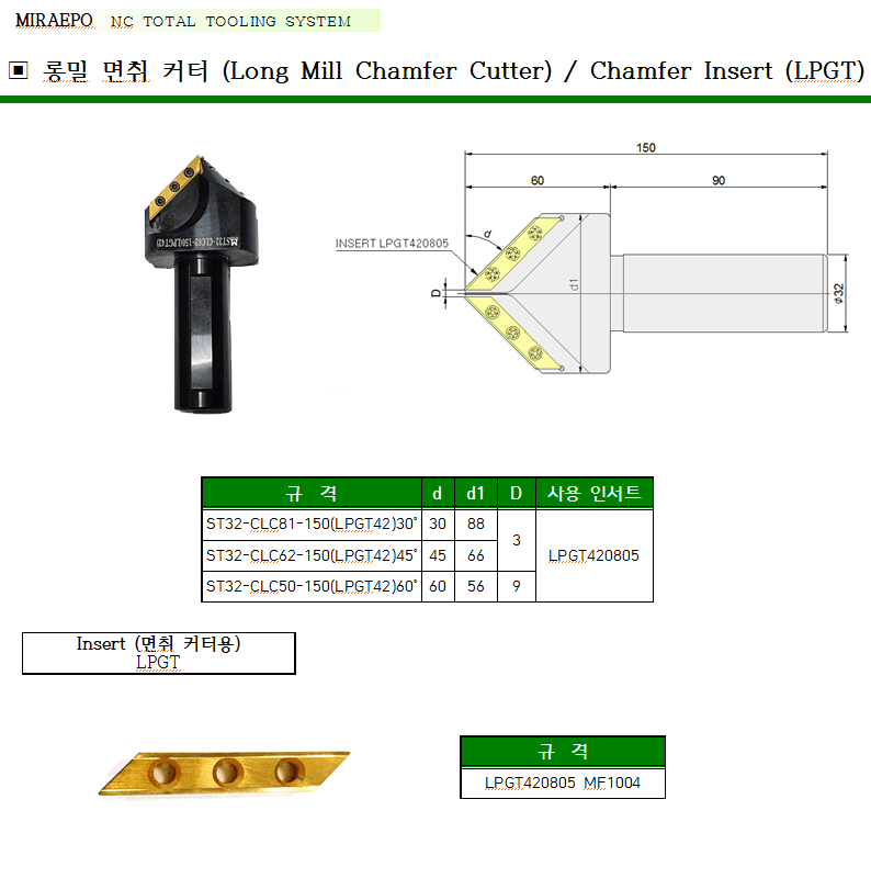 ·Õ¹Ð ¸éÃë Ä¿ÅÍ (Long Mill Chamfer Cutter) LPGT(ÀμƮ) Á¦Ç°Ãß°¡